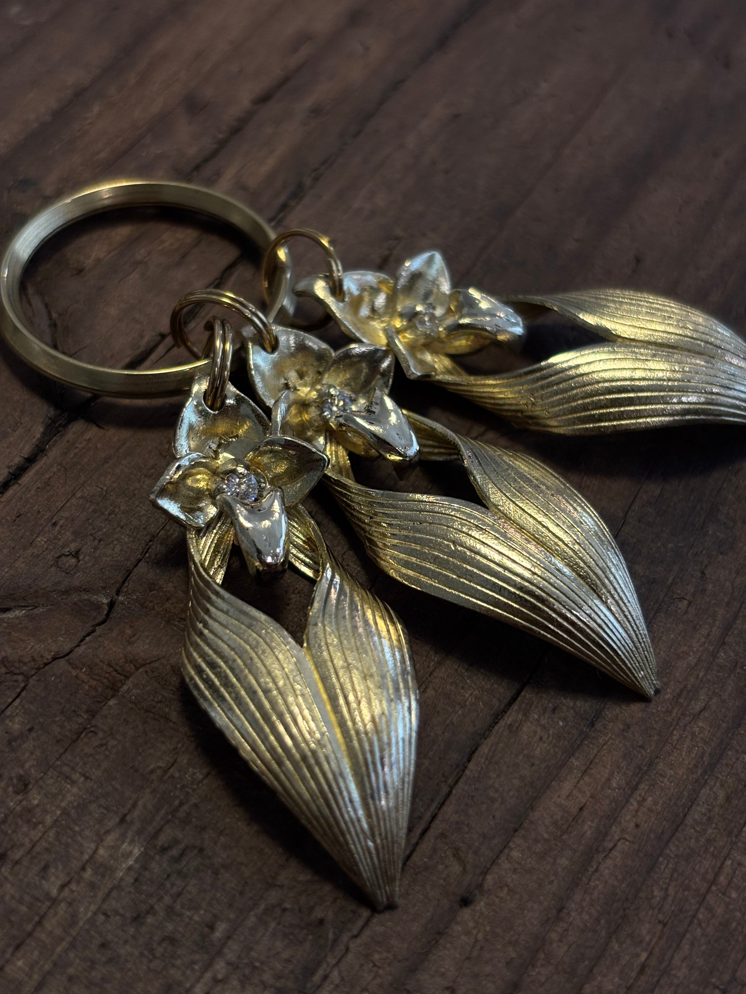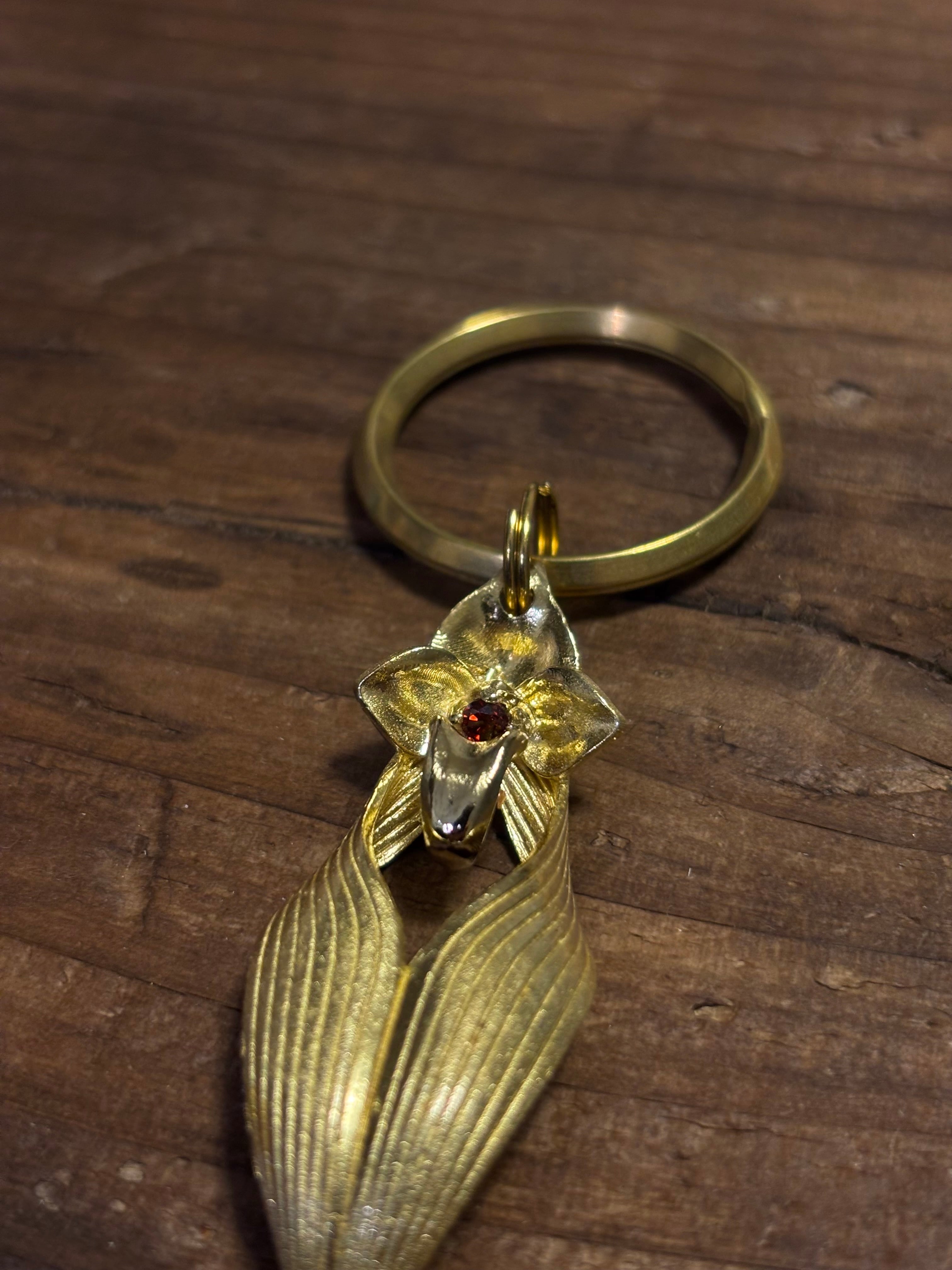 Bulb. annandaleiをモチーフにしたキーリング3連仕様です。リップ部分は可動式です。キュービックジルコニアはclearとgarnet(赤色)からお選びいただけます。